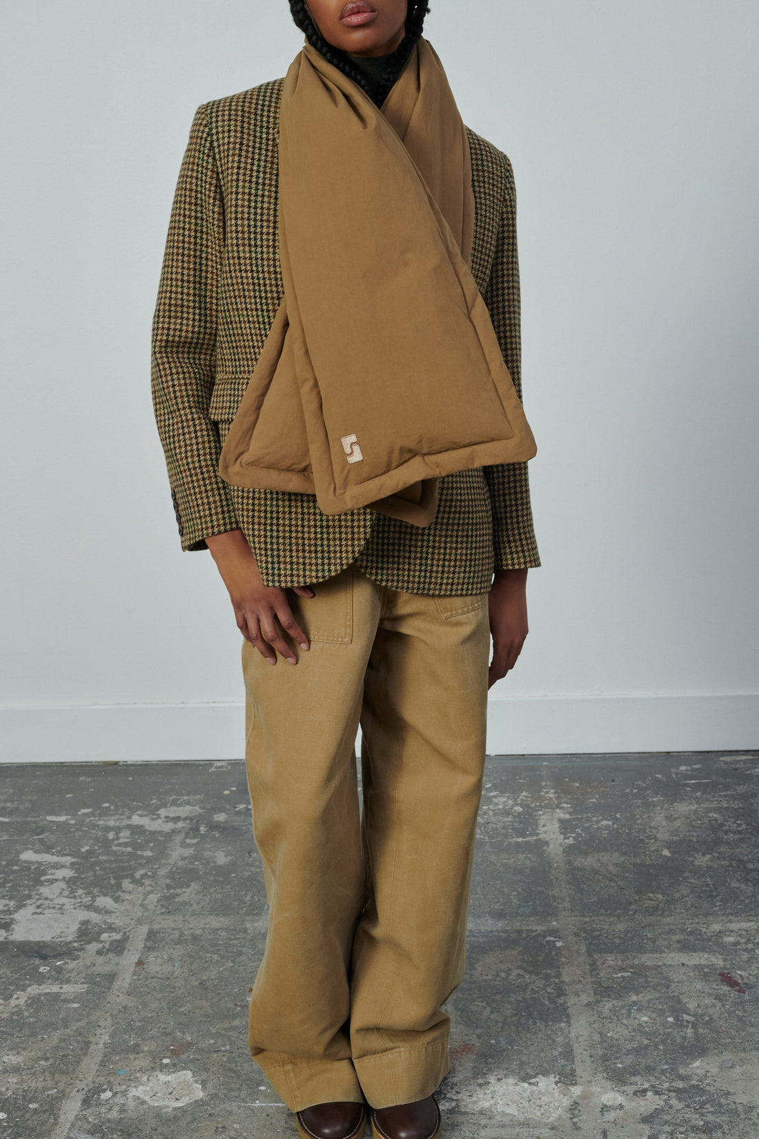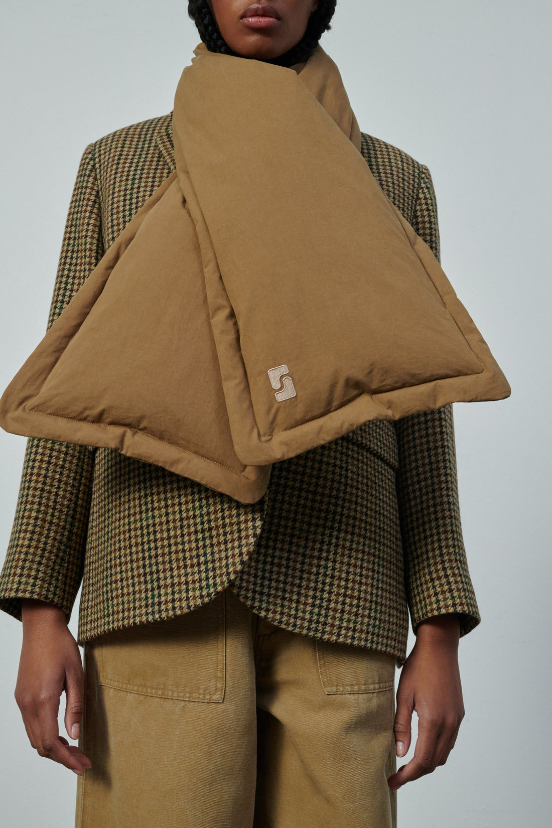 Water-repellent peached cotton padded scarf beige