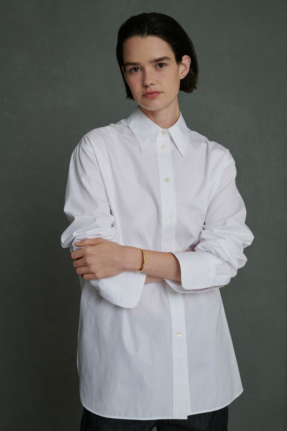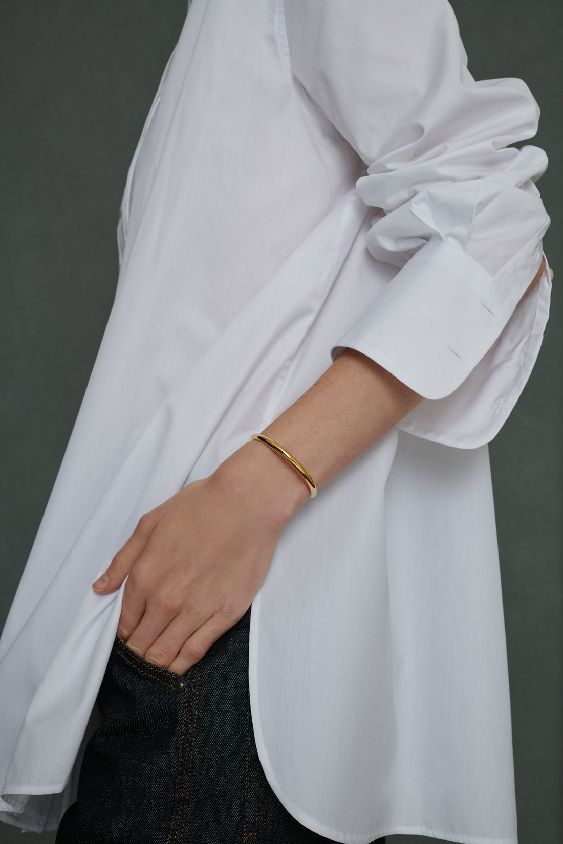 JOHNNY est un bracelet jonc épais en vermeil. Il dispose d'un fermoir à cliquet qui facilite son enfilage au poignet.