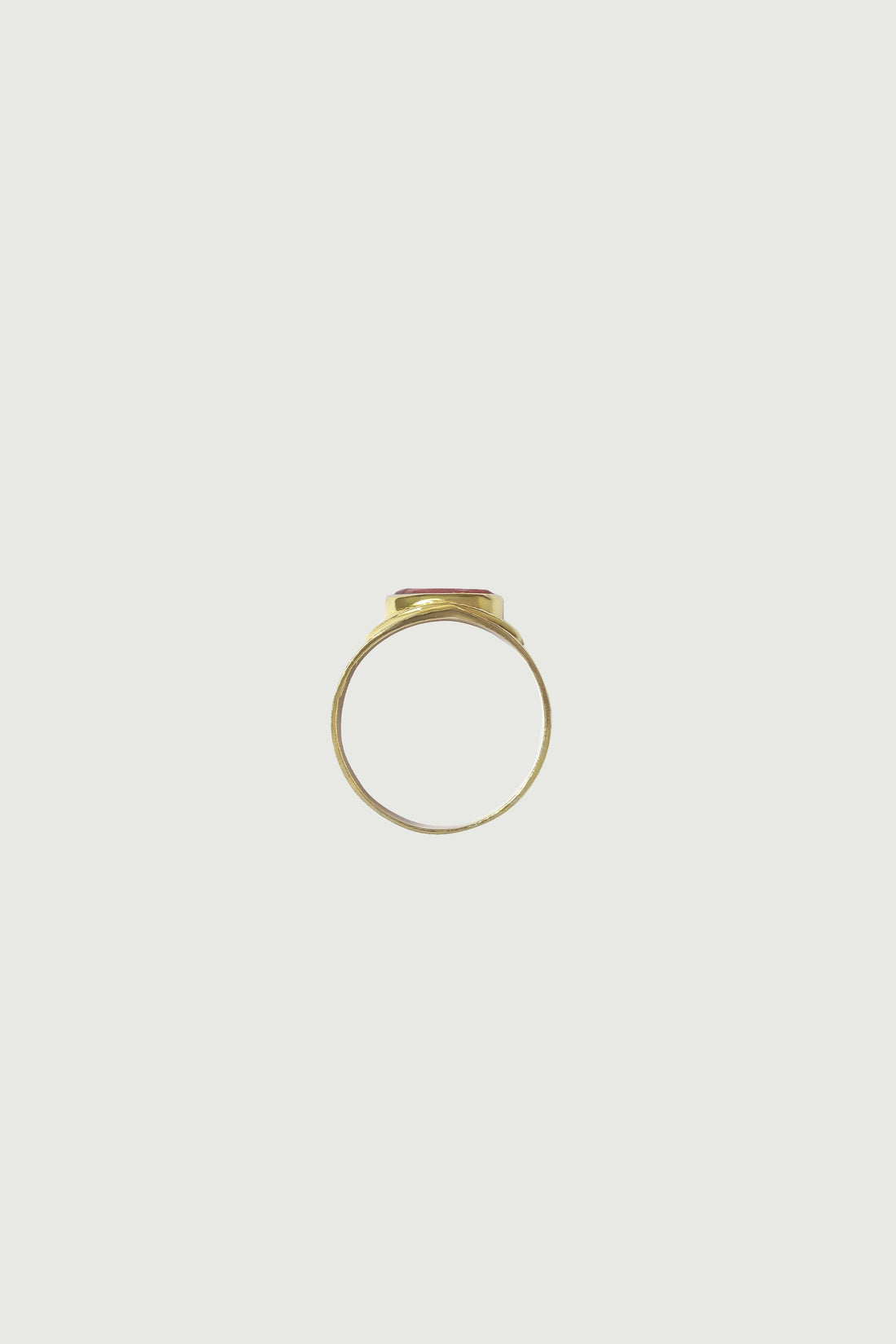 DRAGE est une bague chevalière en vermeil, ornée d'une pierre semi-précieuse (onyx vert foncé).
